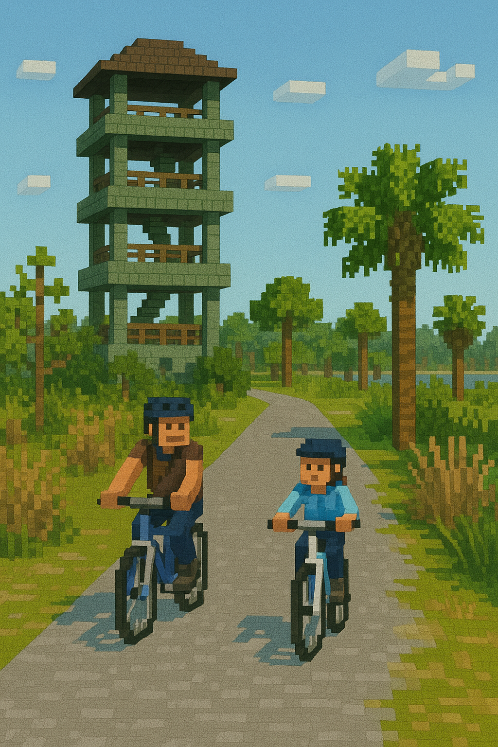 This 365-acre preserve is beloved for biking, walking, and birdwatching — but in Minecraft form, it transforms into a serene, blocky oasis. The five-story observation tower becomes a mini monument to eco-adventure, surrounded by pixelated palms and swaying grass blocks.